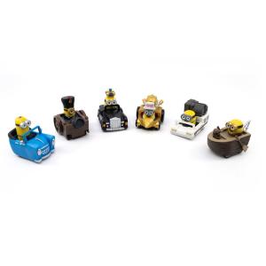Fai un giro con i bizzarri Minions e le loro adorabili macchinine! Ci sono sei versioni da collezionare e correre. Tira indietro la macchina su qualsiasi superficie liscia e senti l'eccitazione crescere mentre si prepara all'azione.