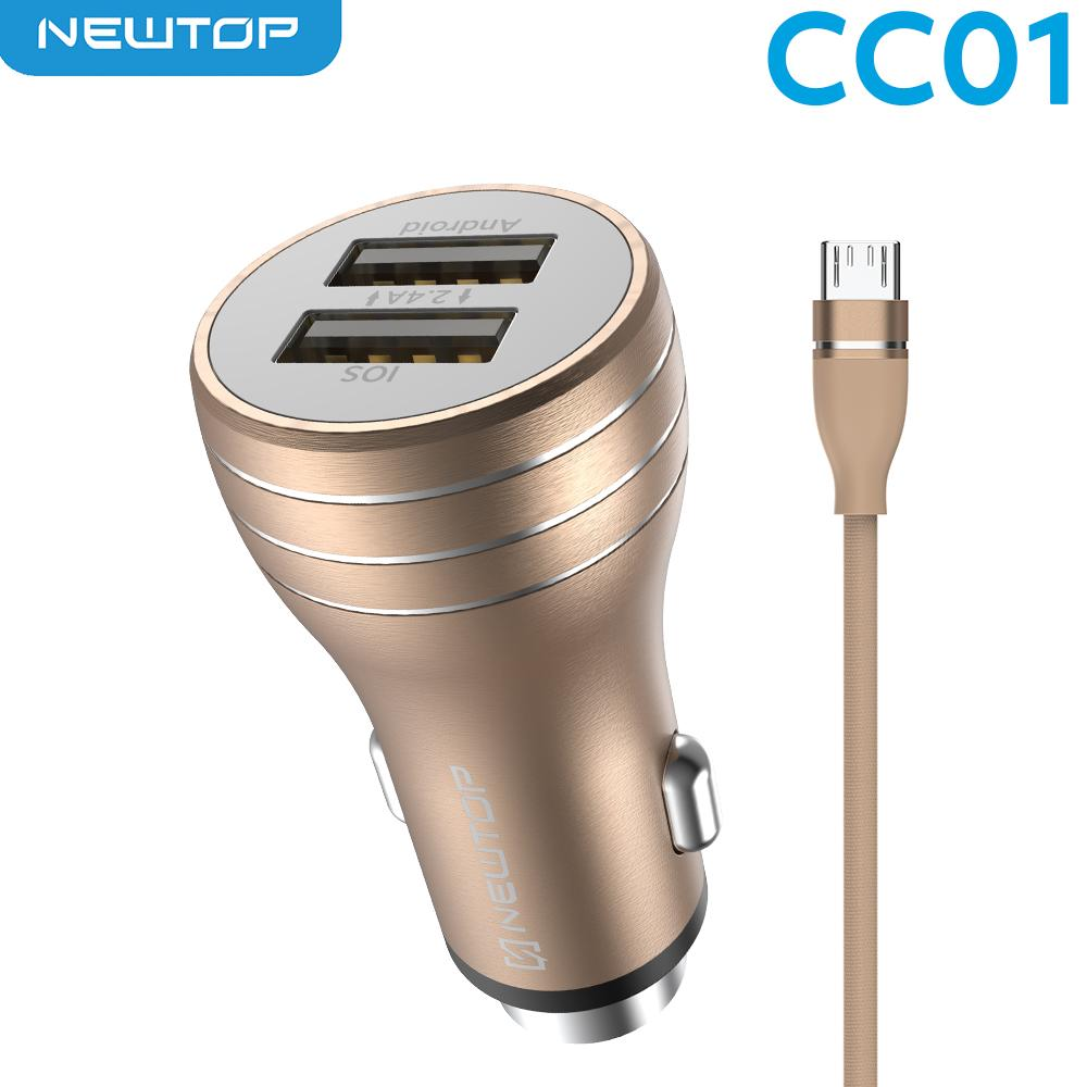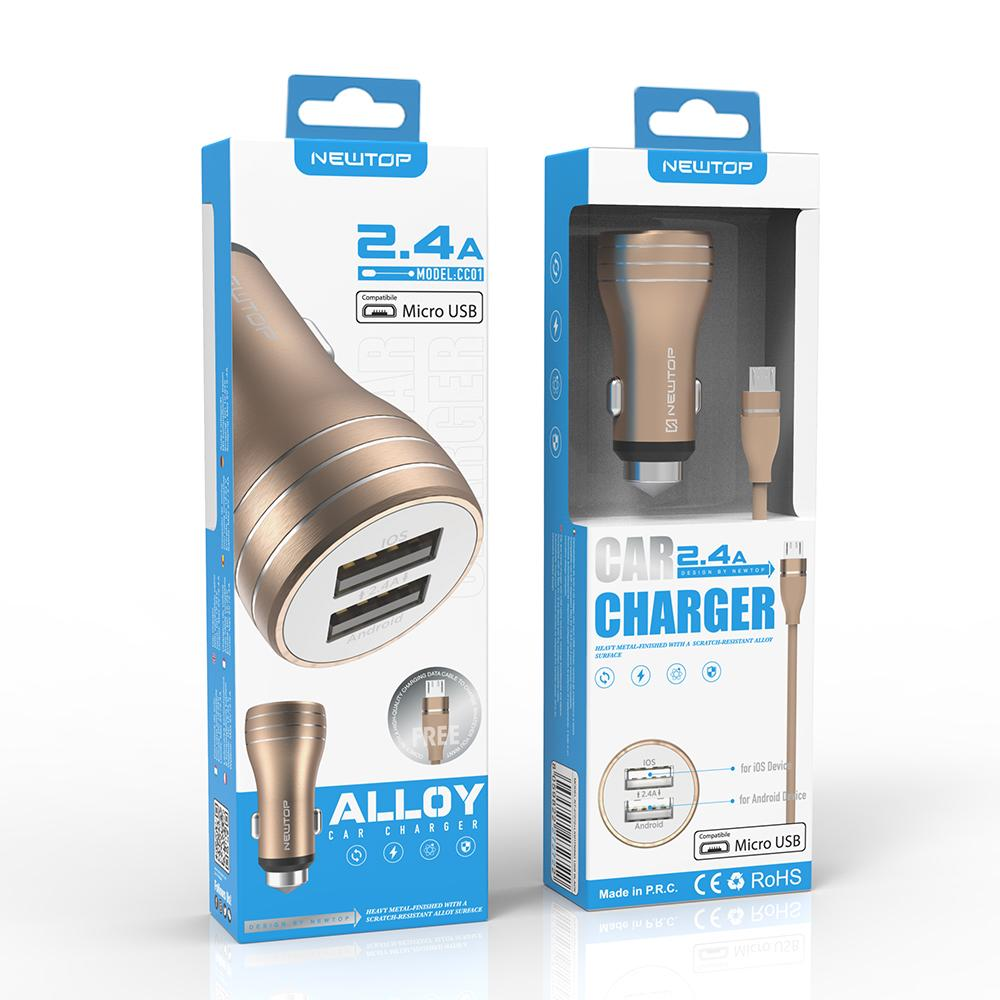 NEWTOP CC01 ALUMINIUM CAR CHARGER 2.4A 2USB CON CAVO MICRO USB