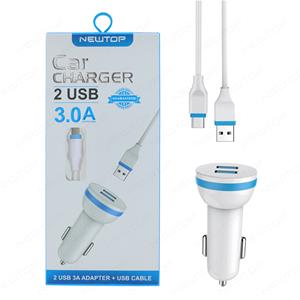 NEWTOP CARICATORE MACCHINA 2USB 3A CON CAVO MICROUSB