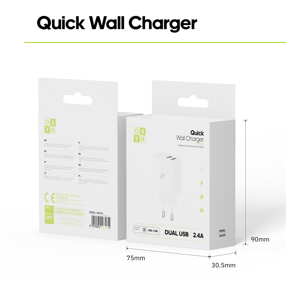 OXYN WAC03 CARICATORE 2USB 2.4AOXYN WAC03 CARICATORE 2USB 2.4A