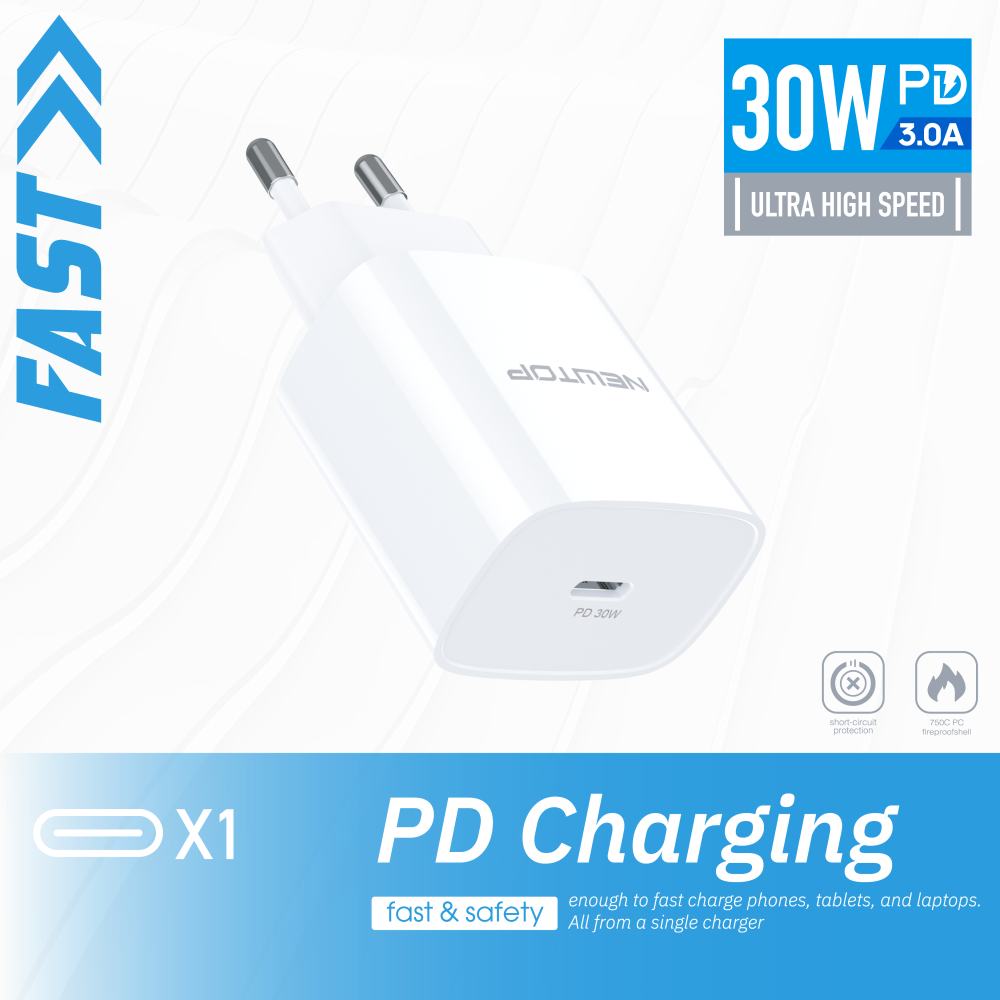 NEWTOP CM67 CARICATORE DA MURO PD 30W CON CAVO TYPE-C