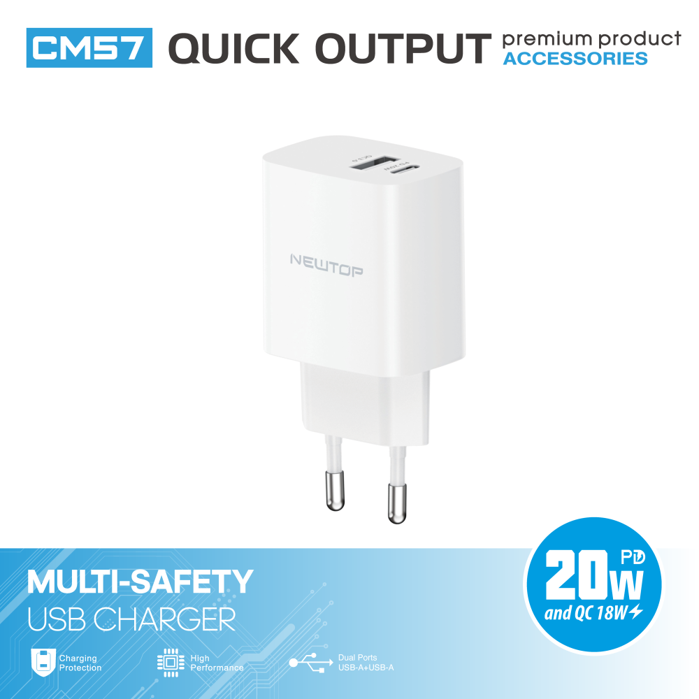 NEWTOP CM57 CARICATORE PD 20W + QC 18W CON CAVO TYPE-C/ LIGHTNINGNEWTOP CM57 CARICATORE PD 20W + QC 18W CON CAVO TYPE-C/ LIGHTNINGNEWTOP CM57 CARICATORE PD 20W + QC 18W CON CAVO TYPE-C/ LIGHTNING