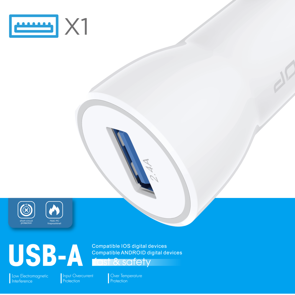 Porta USB singola con uscita 2.4A, per una ricarica efficiente e veloce.