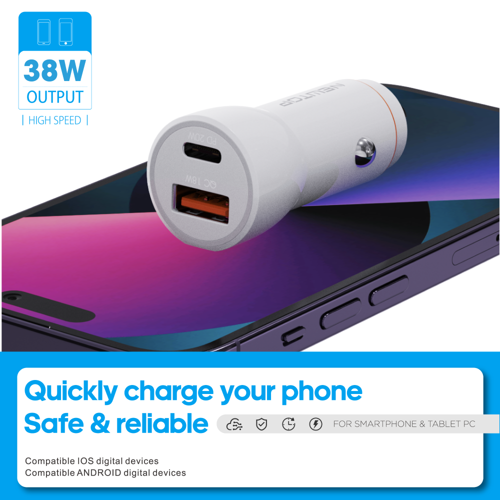 NEWTOP CC17 CARICATORE DA MACCHINA QC18W+ PD 38W CON CAVO TYPE-C/TYPE-C