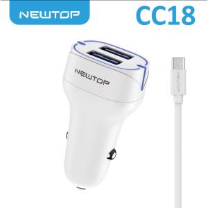 NEWTOP CC18 CARICATORE DA MACCHINA 2USB 2.4A CON CAVO TYPE-C