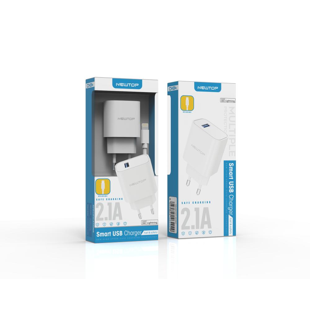NEWTOP CM34 CARICATORE DA MURO 1 USB 2.1A CON CAVO LIGHTNING