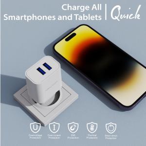 Due Porte USB: Dotato di due porte USB che offrono una potenza totale massima di 2.1A, consentendo la ricarica simultanea di due dispositivi.