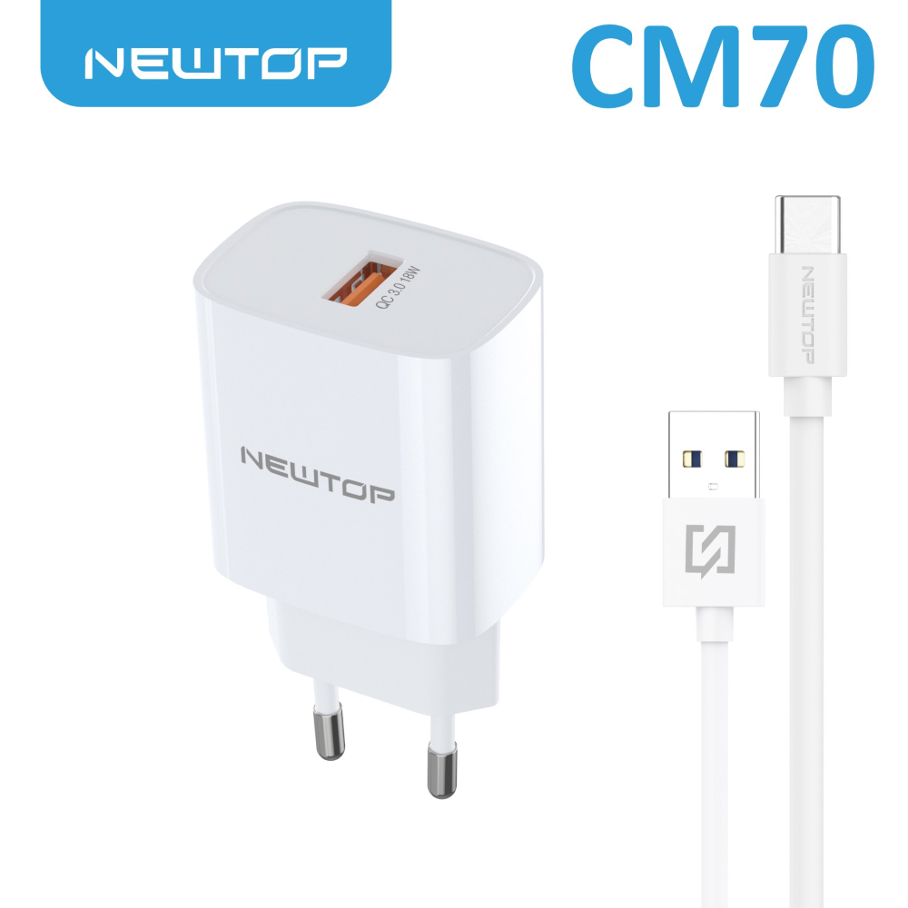NEWTOP CM70 CARICATORE DA MURO QC3.0 18W CON CAVO TYPE-C