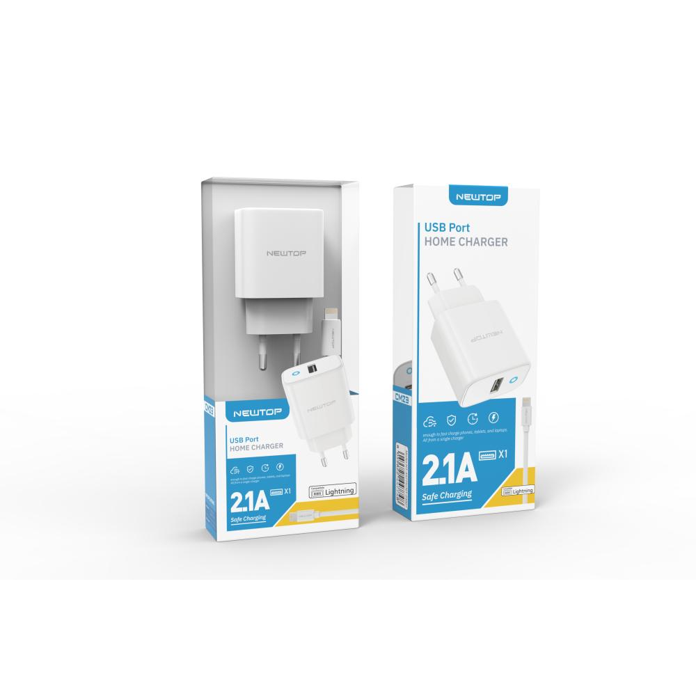 NEWTOP CM23 CARICATORE DA MURO SIMPLE 1 USB 2.1A CON CAVO LIGHTNING