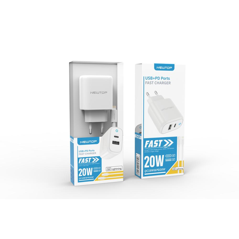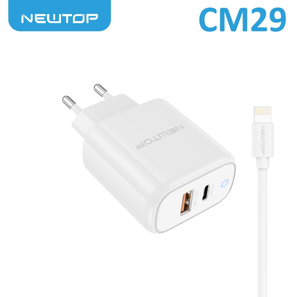 NEWTOP CM29 CARICATORE QC3.0 18W + PD 20W CON CAVO TYPE-C/LIGHTNING
