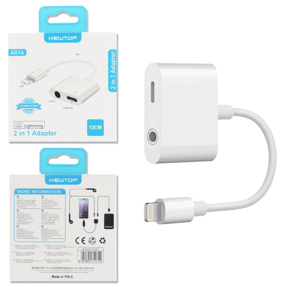 NEWTOP AD14 ADATTATORE SDOPPIATORE LIGHTNING/LIGHTNING + AUX 3.5F SOLO AUDIO