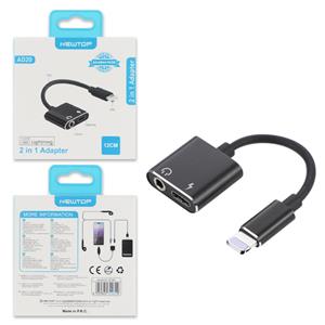 NEWTOP AD20 ADATTATORE SDOPPIATORE LIGHTNING/LIGHTNING + AUX 3.5F SOLO AUDIO