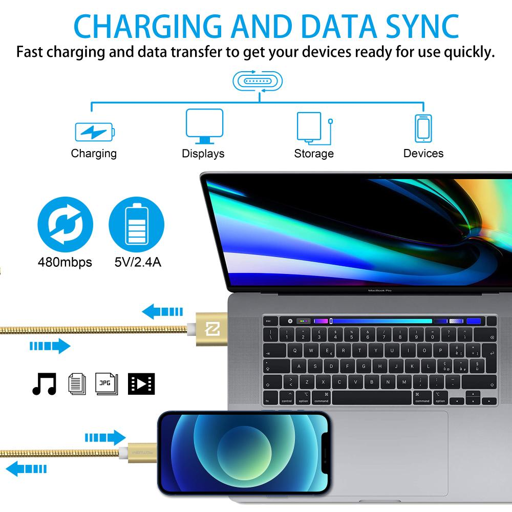 NEWTOP CU11 STEEL CAVO 100CM USB/LIGHTNING (Lightning Iphone 100cm - Oro)