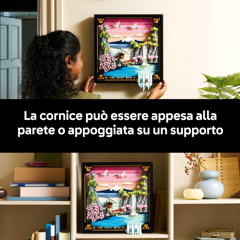 Porta colore e natura a casa tua con questo set costruibile Paesaggio giapponese con ciliegi fioriti LEGO® Art (31218) per adulti. Ispirata alla bellezza della primavera in Giappone e agli artisti Ukiyo-e del paese, questa splendida opera d’arte murale 3D in mattoncini contiene il Monte Fuji, una casa da tè, un ponte, una cascata, gru della Manciuria volanti e fiori di ciliegio, acero "Sango-Kaku" e alberi koyamaki.