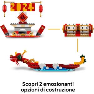 Ricco di dettagli: il set include elementi come una lanterna e un petardo, oltre a buste rosse, un augurio di buon auspicio per l’anno a venire e 2 minifigure LEGO; una divertente set LEGO ottimo come decorazione di capodanno