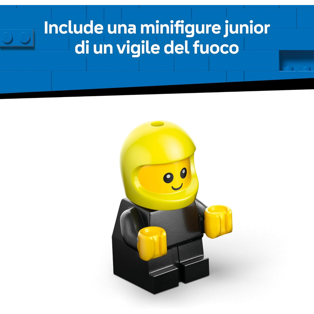 Il set include una minifigure junior di pompiere Veicoli LEGO City perfettamente posizionabile nella cabina di guida per il gioco di finzione.