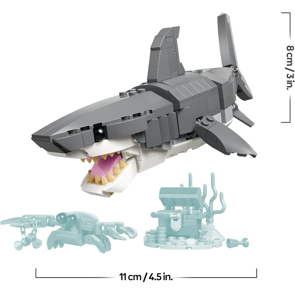 DIMENSIONI: questo set di figure di animali marini di 379 pezzi include uno squalo giocattolo LEGO® che misura 8 cm di altezza, 26 cm di lunghezza e 11 cm di larghezza