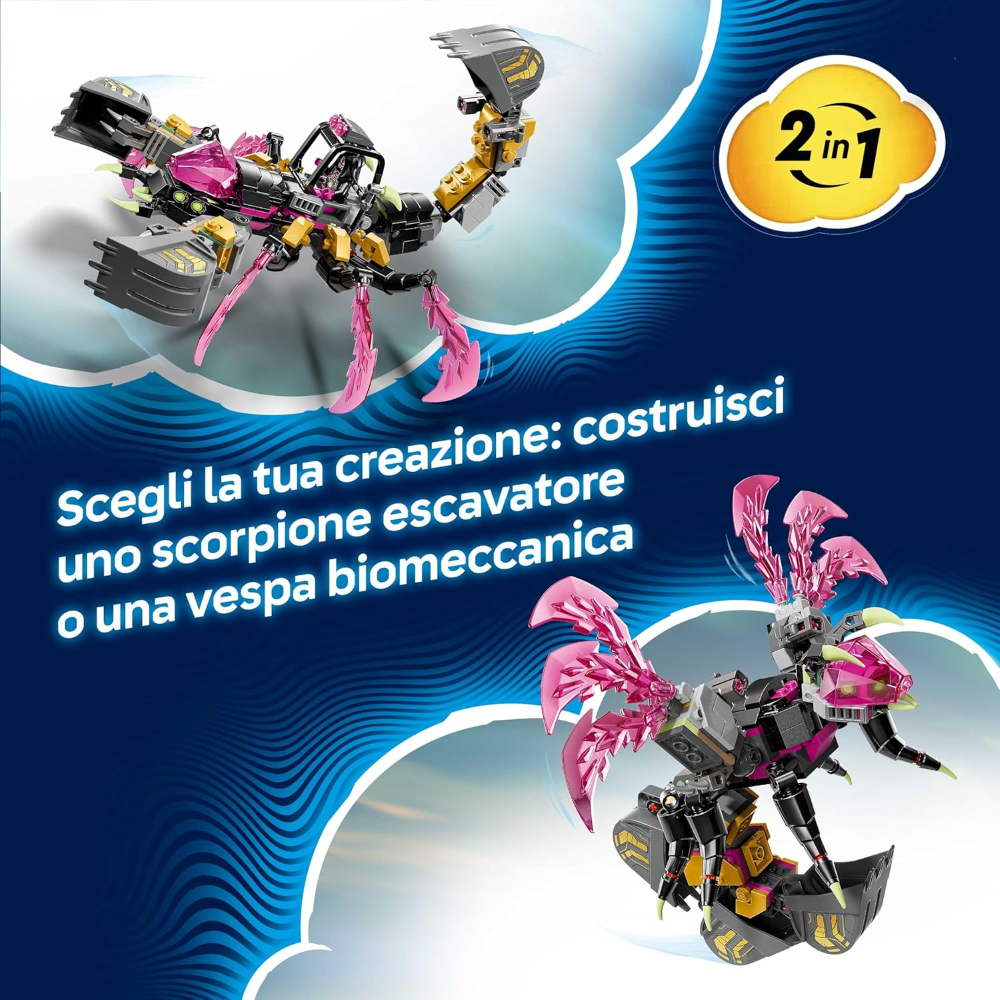 ESCAVATORE SCORPIONE E VESPA GIOCATTOLO: accendi l’immaginazione dei bambini con il set Scorpione escavatore LEGO® DREAMZzz™ (71513), un fantastico giocattolo da costruzione per i bambini dai 7 anni in su