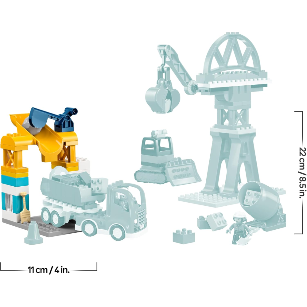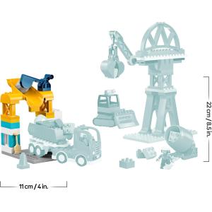 I bambini possono costruire un bulldozer con un benna di sollevamento, un camion giocattolo con funzione di ribaltamento, un’autobetoniera con bicchiere girevole e il braccio mobile della gru è dotato di una benna incernierato. I mattoncini possono anche essere assemblati per creare una gru alta, una stazione di carico che i camion possono attraversare e un ponte su cui i veicoli possono guidare.