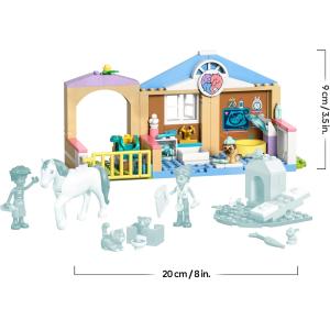 Il set giocattolo include le mini-doll di Leo e Valeria, più un cavallo, un cane, un coniglietto e 2 gatti. Accessori a tema veterinario come una siringa, un termometro e una clipboard e una penna ispirano il gioco di finzione.