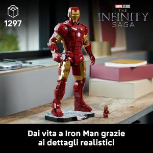 DIMENSIONI: il personaggio di Iron Man in questo set di 1.297 pezzi è alto 38 cm, largo 21 cm e profondo 11 cm