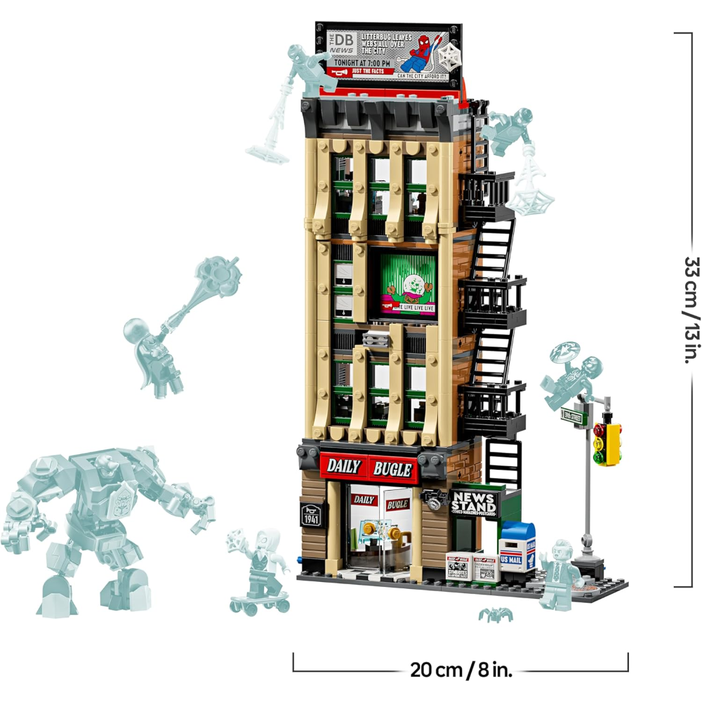 DIMENSIONI: l’edificio del Daily Bugle in questo set di 781 pezzi misura 33 cm di altezza, 20 cm di larghezza e 6 cm di profondità