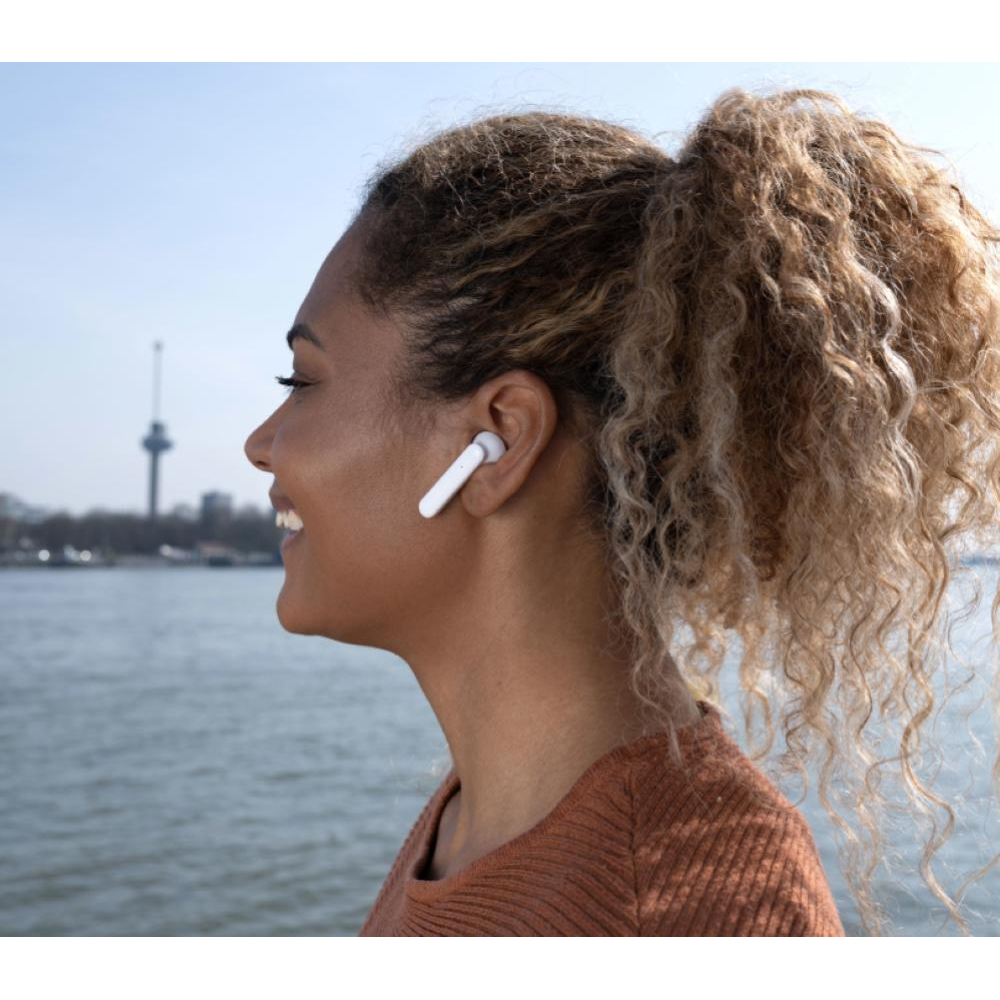 Con il design minimalista alla moda, le cuffie uniscono un audio eccellente a un aspetto elegante. Con le comode capsule auricolari a guscio, le cuffie staranno ferme e comode per tutto il giorno e tu potrai comunque fare attenzione ai suoni circostanti.