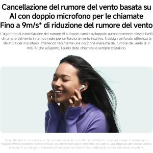 *La cancellazione del rumore del vento per i dati delle chiamate proviene dai laboratori interni Xiaomi. I risultati effettivi possono variare a seconda della forma dell'orecchio, delle abitudini di utilizzo, del modo in cui si indossano gli auricolari, ecc.