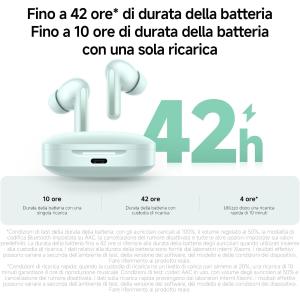 *I dati vengono calcolati in base a ogni brano della durata di 4 minuti, riprodotto al 50% del volume con batteria degli auricolari al 100%. Gli effetti e l'esperienza effettivi possono variare a seconda del metodo di prova e dell'ambiente. Per maggiori dettagli, fare riferimento al prodotto reale.