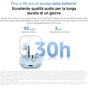 *I dati vengono calcolati in base a ogni brano della durata di 4 minuti, riprodotto al 50% del volume con batteria degli auricolari al 100%. Gli effetti e l'esperienza effettivi possono variare a seconda del metodo di prova e dell'ambiente. Per maggiori dettagli, fare riferimento al prodotto reale.