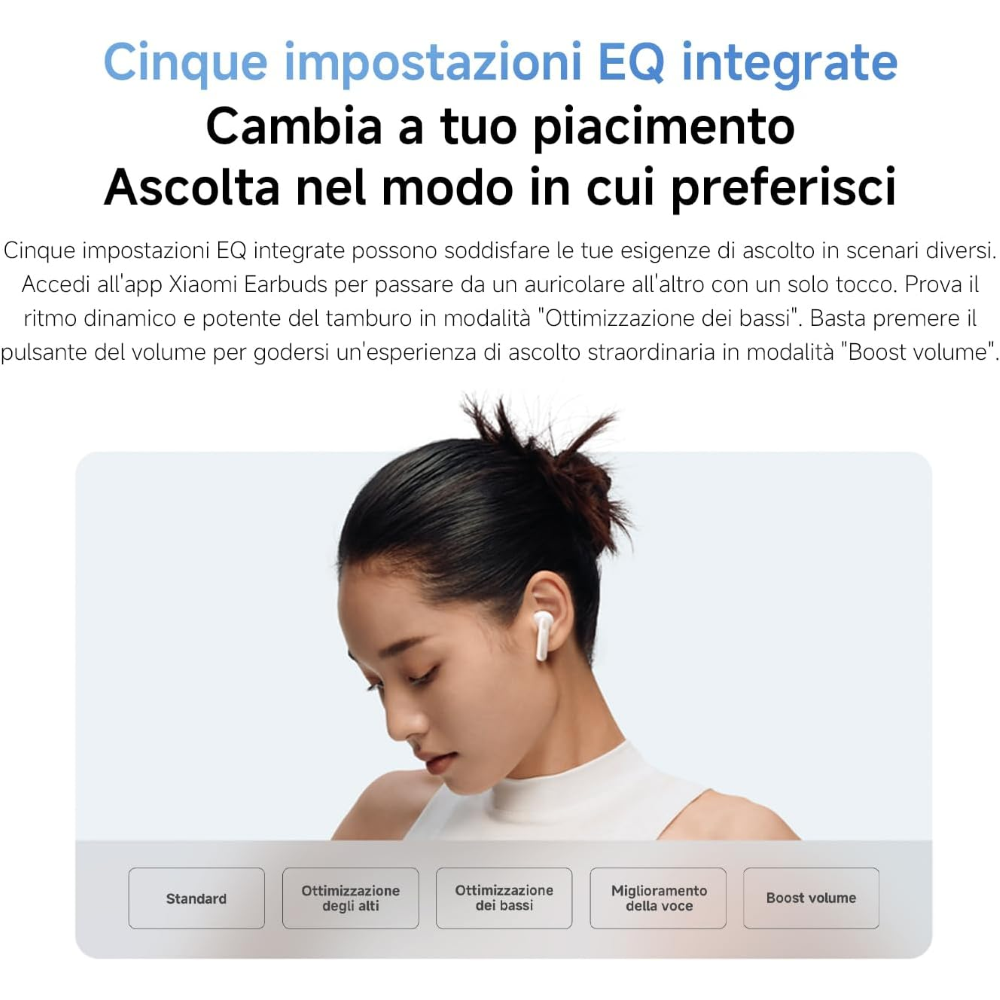 Con un ampio driver dinamico da 14,2 mm e la sintonizzazione di precisione Xiaomi Acoustic Lab, le prestazioni del woofer sono state aggiornate per offrire un'esperienza uditiva straordinaria.