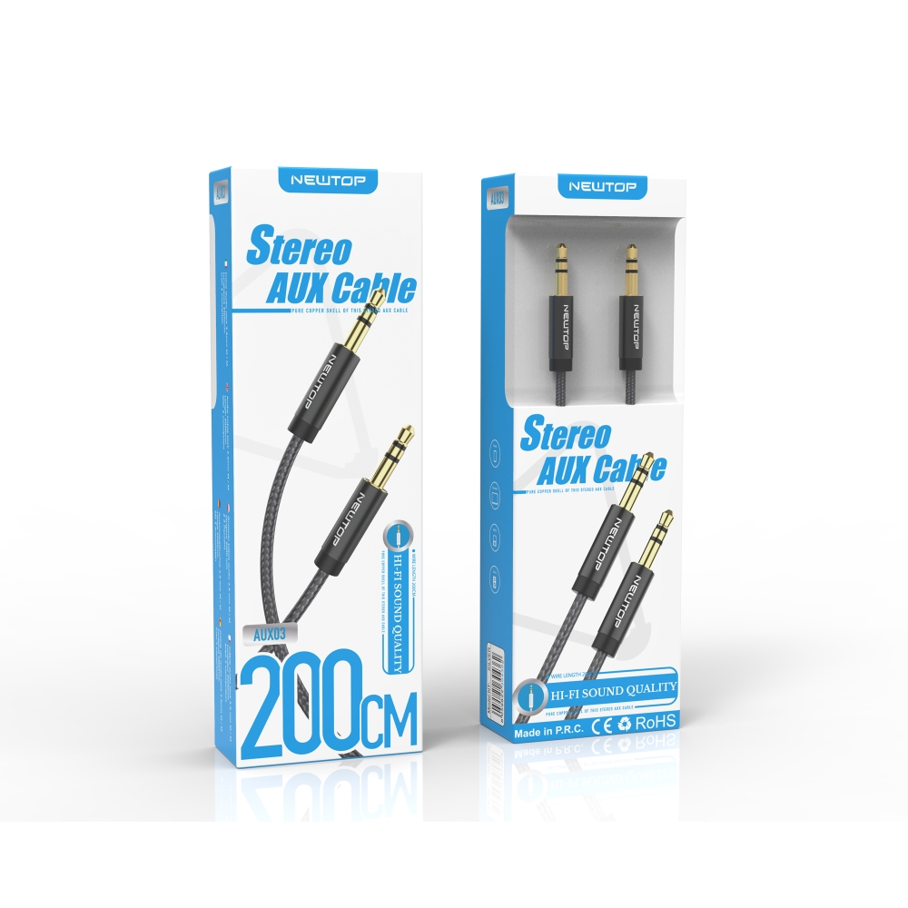 Per utilizzare un dispositivo elettronico con qualsiasi altro dispositivo dotato di un'uscita audio o delle cuffie, sarà necessario usare il nostro cavo Aux 3.5mm Audio. Il cavo NewTop AUX03 è dotato di 3 connettori e una lunghezza pari a 200 cm, cosicchè potrai utilizzare il tuo dispositivo oppure poggiarlo dove vuoi, senza che resti vicino al dispositivo dotato di un'uscita audio.