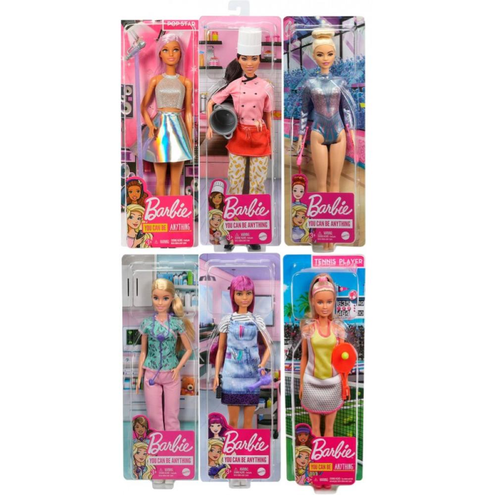 Esplora il mondo delle professioni con le bambole Barbie che includono l'oculista, la veterinaria, la scienziata, la pasticciera, l'agricoltrice e la pop star, la bagnina e la pattinatrice su ghiaccio.