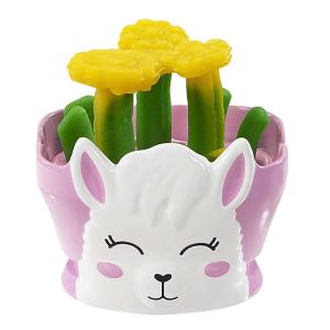 Per realizzare i fiori, metti la pasta modellabile al centro della stazione di lavoro e poi metti il 'vaso' sopra. Premi la leva laterale e guarda i fiori apparire nel vaso!