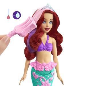 Ispirata al personaggio animato del celebre film Disney La Sirenetta, questa bambola Ariel Cambia Colore può cambiare il colore dei capelli e della coda.