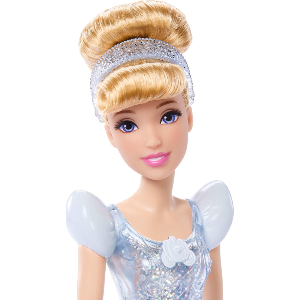 Scopri questa bambola Cenerentola, ispirata alla principessa gentile e coraggiosa del classico film Disney. La bambola snodata sfoggia un outfit e accessori scintillanti, con scarpe e coroncina incluse. Con il caratteristico look del film, Cenerentola è pronta per qualsiasi avventura! La bambola non può reggersi in piedi da sola. Colori e decorazioni possono variare.