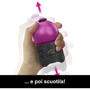 Ora è il momento di scoprire quale mostramica si materializzerà. Ruota la sfera di cristallo e osserva la pozione 'magica' svanire per rivelare al suo interno una bambola da paura!