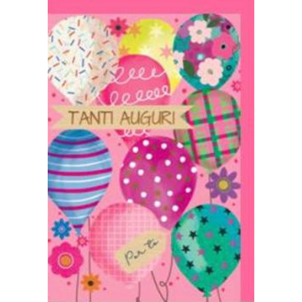 HALLMARK - BIGLIETTI AUGURI EFFETTO METALLICO PALLONCINI/ROSA 129697