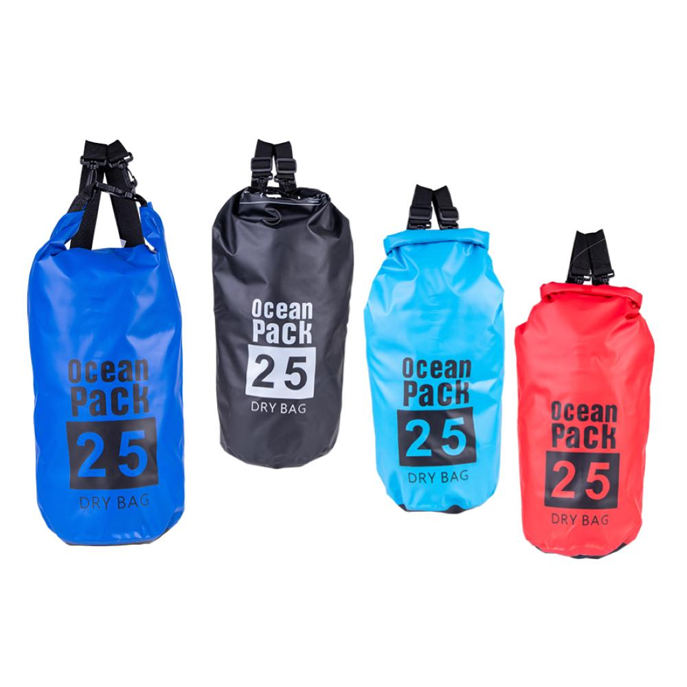 La capacità di 25 litri rende questa borsa ideale per il trasporto di oggetti come vestiti, asciugamani, attrezzature sportive, cibo, bevande e altri oggetti personali più grandi. Grazie alla sua capacità impermeabile, la borsa è anche ideale per gite in barca, in spiaggia o in escursioni in montagna, dove è importante proteggere gli oggetti dall'acqua.