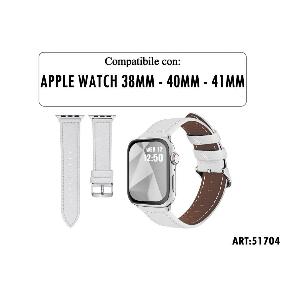 NEWTOP CW03 CINTURINO IN PELLE LITCHI 38 - 40 - 41MM (APPLE - Watch 38mm - 40mm - 41mm - Bianco)