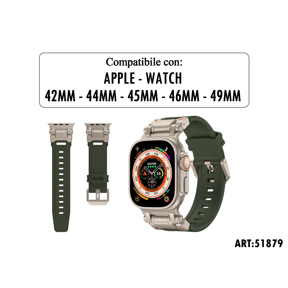 NEWTOP CW07 CINTURINO WATCH IN SILICONE SPORTIVO REGOLABILE 42 - 44 - 45 - 46 - 49MM (APPLE - Watch 42mm - 44mm - 45mm - 46mm - 49mm - Verde militare)