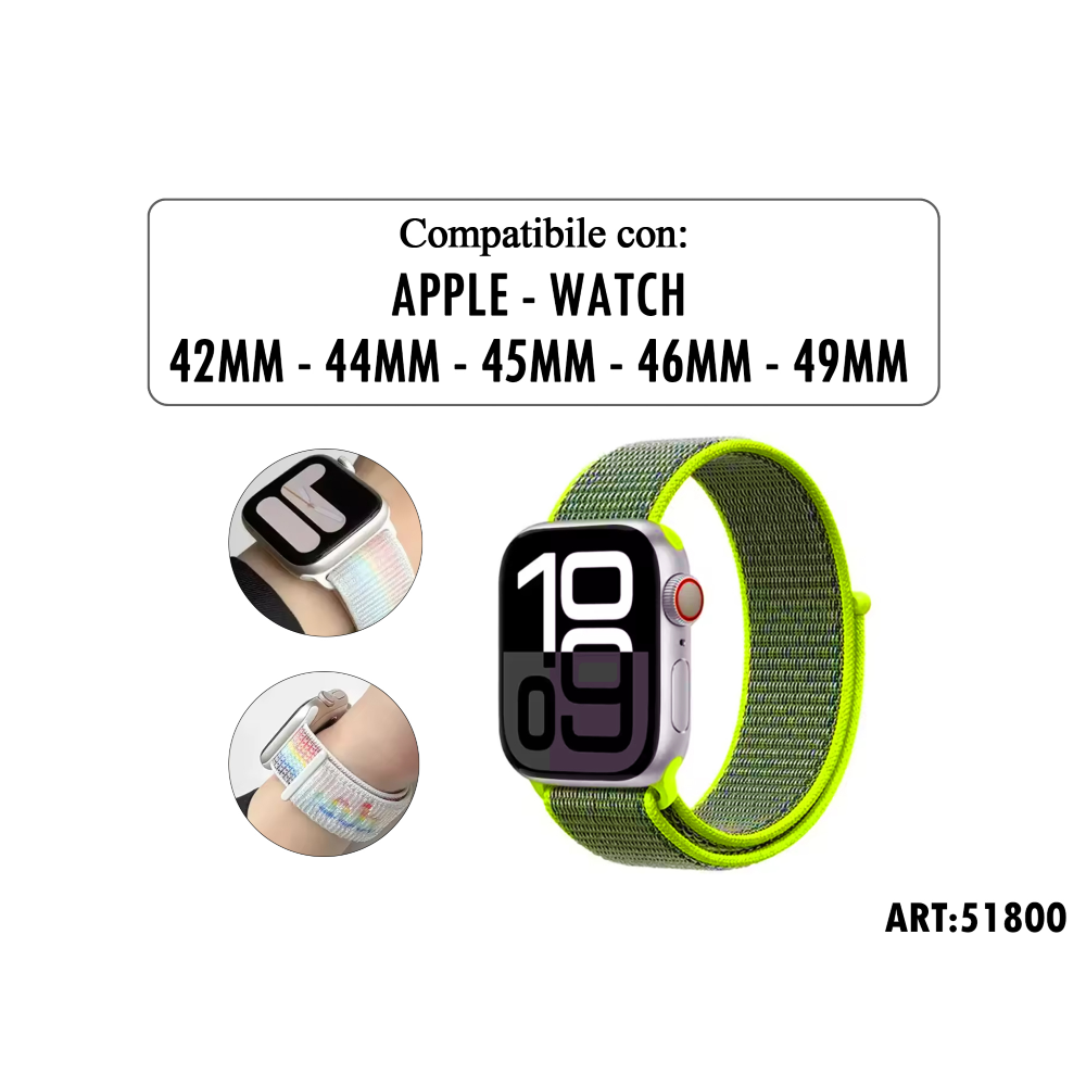 NEWTOP CW10 CINTURINO WATCH IN NYLON 42 - 44 - 45 - 46 - 49MM (APPLE - Watch 42mm - 44mm - 45mm - 46mm - 49mm - Verde fluo senza foro logo)
