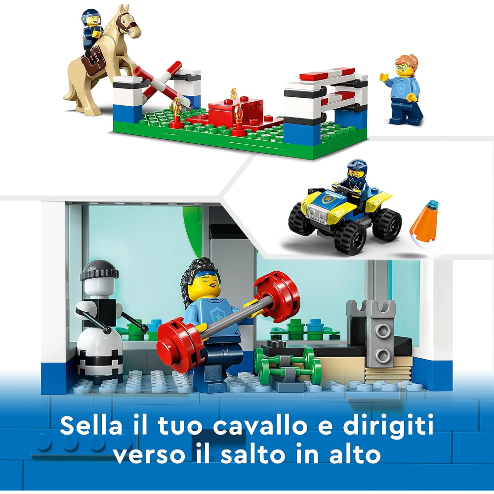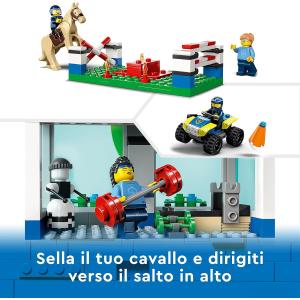 Cosa c’è nella scatola?Il set include una stazione di polizia a 2 piani con tante strutture per l’addestramento all’aperto per i poliziotti di LEGO® City, oltre a un fuoristrada giocattolo, 6 minifigure e un cavallo