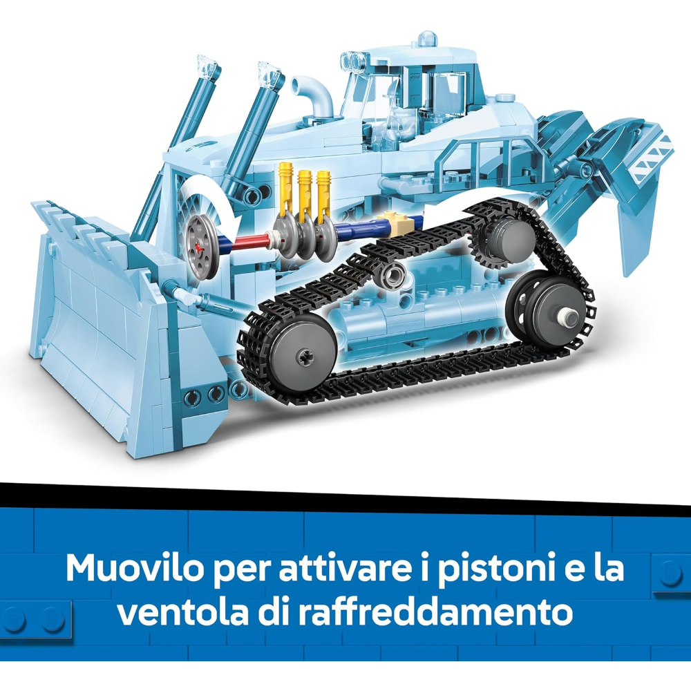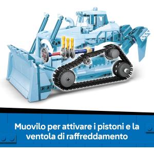 Veicolo giocattolo ispirato alle macchine reali: i bambini possono sollevare la pala e lo scarificatore posteriore a doppio gambo, e spingere il veicolo per attivare i pistoni mobili visibili e la ventola di raffreddamento rotante