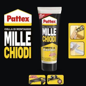 Confezione – Pattex Millechiodi Forte & Rapido adesivo per superficie porosa extra-forte e rapido, con nuova formulazione a base acqua, senza solventi, bianco, 1x 100g blister