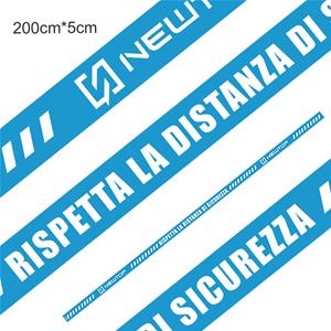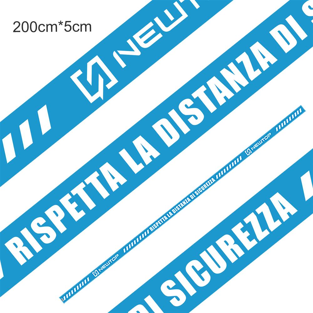 Striscia con scritto: Rispetta la Distanza di Sicurezza. Tutte con logo e scritta Newtop.