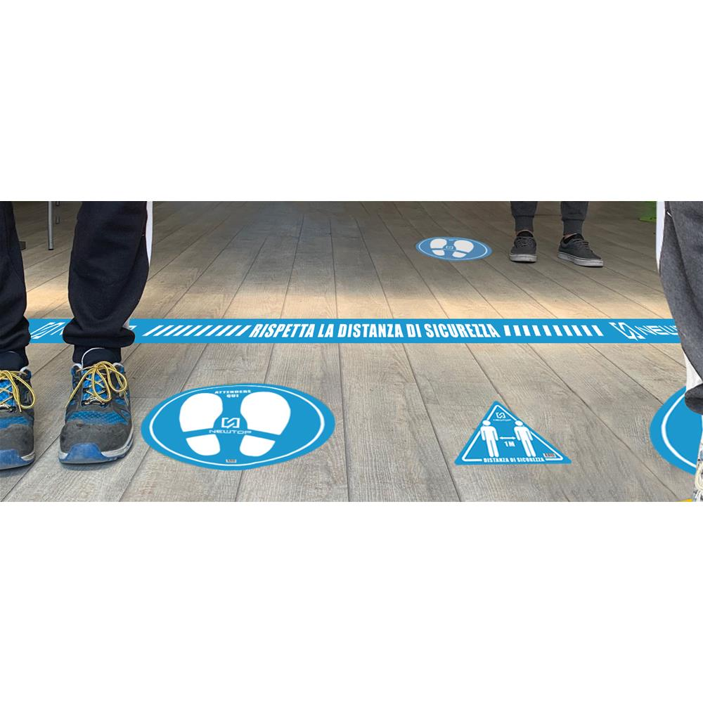Adesivo Antiscivolo da Terra Pavimento "Rispetto Distanza di Sicurezza" Striscia Calpestabile per Code Locali Attività Commerciali. In regola con i nuovi parametri di sicurezza del DPCM e rispetto degli altri