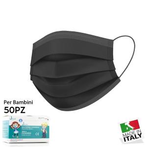 MASCHERINA FACCIALE MONOUSO CHIRURGICA PEDIATRICHE 50/CONF MADE IN ITALY JOLIE NERO
