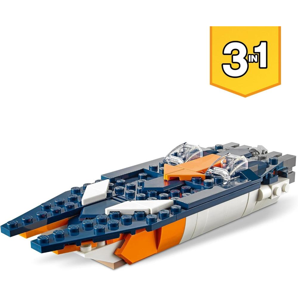 Giocattolo 3-in-1: tanto divertimento creativo con il set di costruzione Jet supersonico LEGO® Creator 3-in-1 (31126), caratterizzato da 3 modelli in 1: un jet, un elicottero e un motoscafo