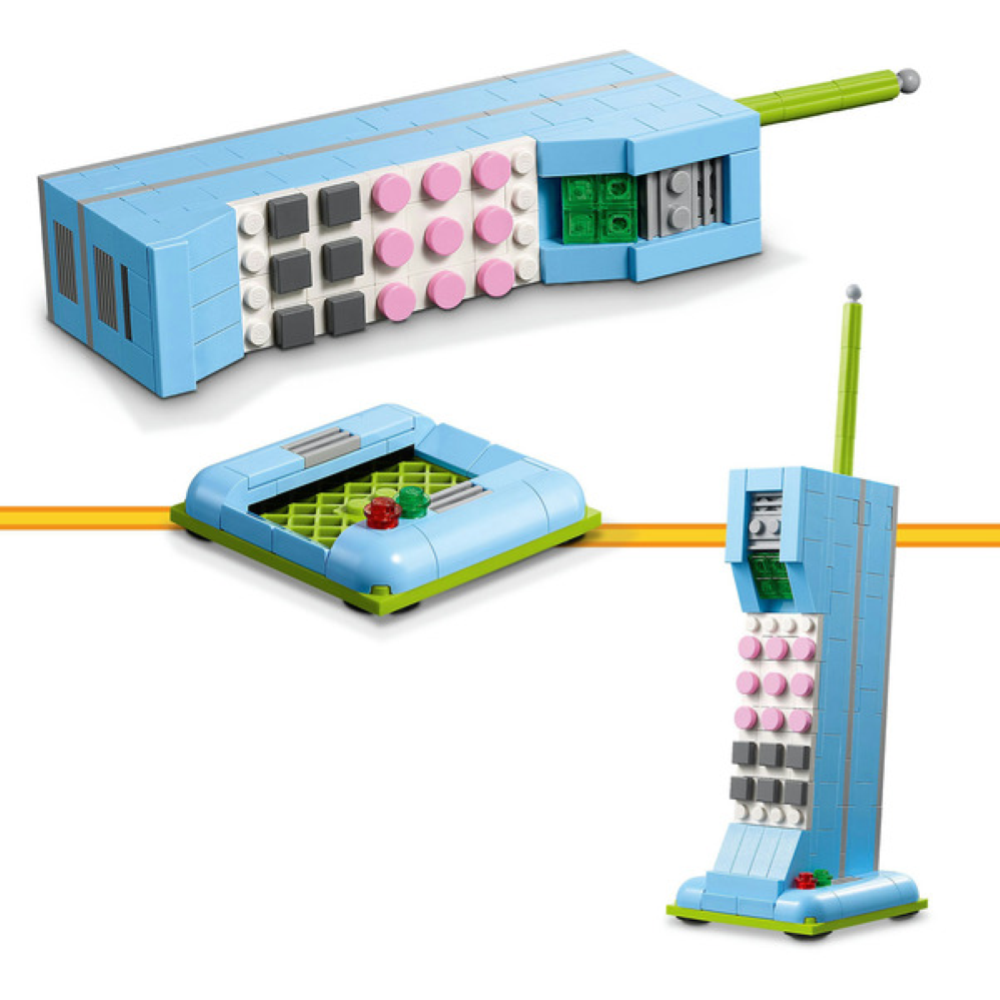 Con l'elegante telefono retrò LEGO Creator, adulti e bambini nostalgici dagli 8 anni in su viaggiano indietro nel tempo. Questo telefono giocattolo riccamente dettagliato ispirato agli anni '60 è dotato di un ricevitore staccabile, cavo pieghevole, quadrante e una divertente funzione a molla per appendere. Il giocattolo creativo è completato da accessori come una matita realizzata con mattoncini LEGO e un blocco note adesivo personalizzabile con 3 note diverse. Un'ottima decorazione per la stanza dei bambini o la scrivania. Ma non è tutto, perché le stesse parti possono essere utilizzate per costruire un fantastico telefono degli anni '80 in una base di ricarica o due fantastici telefoni cellulari degli anni 2000.